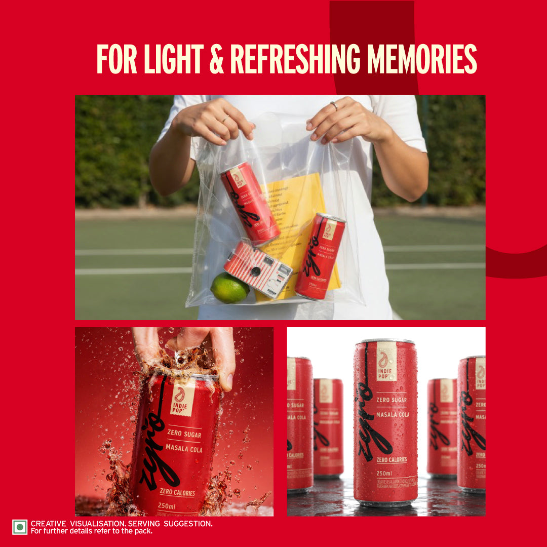 A classic cola with a distinctly Indian twist. Masala Cola Indie Pop is inspired by traditional desi sodas, blending familiar cola notes with warm Indian spice notes that evoke pure nostalgia. Fizzy, flavourful and refreshingly bold, it brings back the joy of old-school soda moments with a contemporary edge. Best enjoyed chilled.